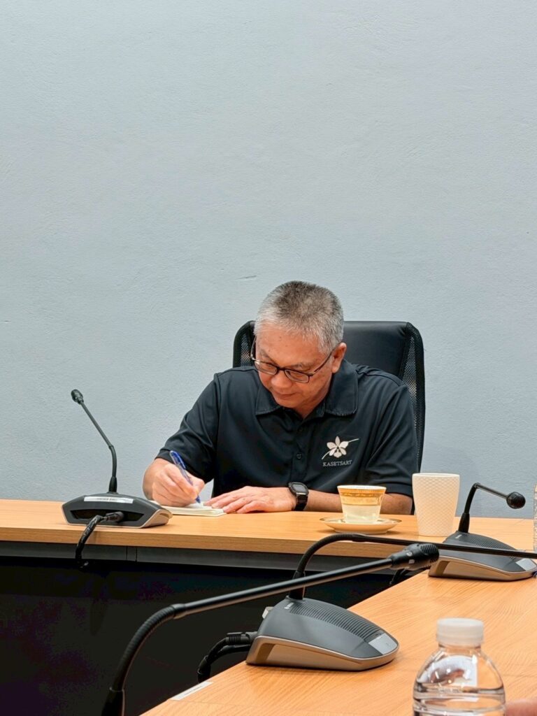 ฝ่ายมหาวิทยาลัยเกษตรศาสตร์ นำโดย รองศาสตราจารย์ นายสัตวแพทย์ ดร.อนุชัย ภิญโญภูมิมินทร์ รองอธิการบดีวิทยาเขตกำแพงแสน ผู้ช่วยศาสตราจารย์ ดร.ทิพวัลย์ สีจันทร์ ผู้ทรงคุณวุฒิพิเศษ และผู้ช่วยศาสตราจารย์ ดร.สุกัญญา รัตนทับทิมทอง ผู้ช่วยอธิการบดีฝ่ายวิจัย บริการวิชาการ และวิเทศสัมพันธ์ วิทยาเขตกำแพงแสน