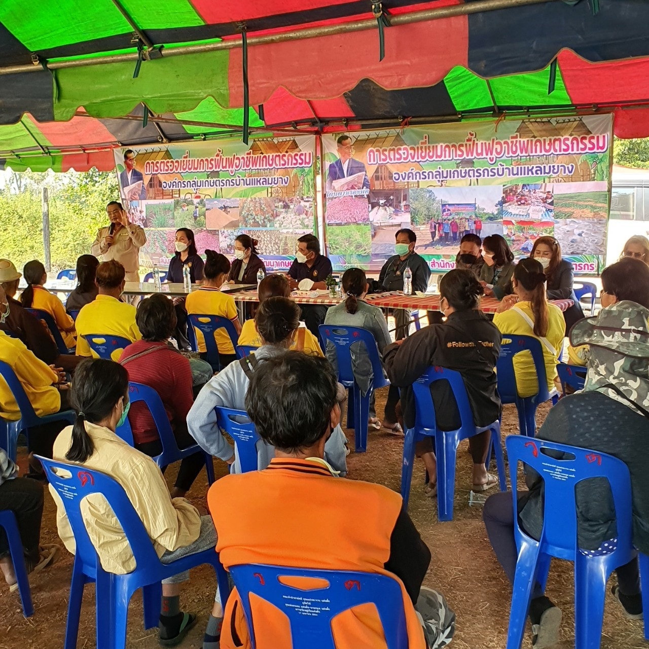 วันที่ 20 ธันวาคม 2564 นายยศวัจน์ ชัยวัฒนสิริกุล รองประธานกรรมการบริหาร คนที่ 1 นายสำเริง ปานชาติ รองประธานกรรมการบริหาร คนที่ 2 นายสมยศ ภิราญคำ รองเลขาธิการสำนักงานกองทุนฟื้นฟูและพัฒนาเกษตรกร นางโสมสุดา โพธิ์อินทร์ รองผู้อำนวยการสำนักฟื้นฟูและพัฒนาเกษตรกร ร่วมกับหัวหน้าสำนักงานสาขาจังหวัดนครสวรรค์ และพาณิชย์จังหวัดนครสวรรค์ ลงพื้นที่ติดตามและตรวจเยี่ยมการดำเนินงานโครงการฟื้นฟูและพัฒนาเกษตรกร ของกลุ่มเกษตรกรบ้านแหลมยาง ณ อำเภอไพศาลี จังหวัดนครสวรรค์ โดยองค์กรเกษตรกร ดำเนินกิจกรรมรวบรวมข้าวเปลือกจากสมาชิกเพื่อจำหน่าย ซึ่งเป็นอาชีพหลักของสมาชิก อีกทั้ง องค์กรเกษตรกร ได้ส่งเสริมอาชีพรอง เช่น ปลูกตะไคร้ มันเทศ มันแครอท พืชผักระยะสั้นต่างๆ รวมถึงไม้ผล เช่น แตงโม ชมพู่ ส้มโอ เป็นต้น ซึ่งเป็นกิจกรรมที่ส่งผลให้สมาชิกมีรายได้มากขึ้น จนอาจกล่าวได้ว่ามีรายได้จากอาชีพเสริมมากกว่าอาชีพหลักคือการปลูกข้าว อีกทั้ง องค์กรเกษตรกร ยังกำหนดเป้าหมายและแผนงานต่อในปี 2565 แบ่งเป็นแผน 3 ระยะ คือ ระยะสั้น (ปลูกพืชหมุนเวียนอายุสั้น ได้เงินรายวัน) ระยะกลาง (ปลูกพืชที่มีอายุมากกว่า 3 เดือนขึ้นไป เก็บเกี่ยวได้ปีละ 2-3 ครั้ง) และระยะยาว (ปลูกพืชที่เก็บเกี่ยวปีละครั้ง) แผนงานเหล่านี้คือสิ่งที่องค์กรเกษตรกร กำหนดขึ้นจากความร่วมมือของสมาชิกกลุ่มเกษตรกรบ้านแหลมยาง สุดท้าย สมาชิกเกษตรกร จะได้รับการจัดการหนี้ภายใต้การดำเนินงานขององค์กรเกษตรกร และสมาชิกจะเข้าสู่กระบวนการฟื้นฟูหลังจัดการหนี้ต่อไป
